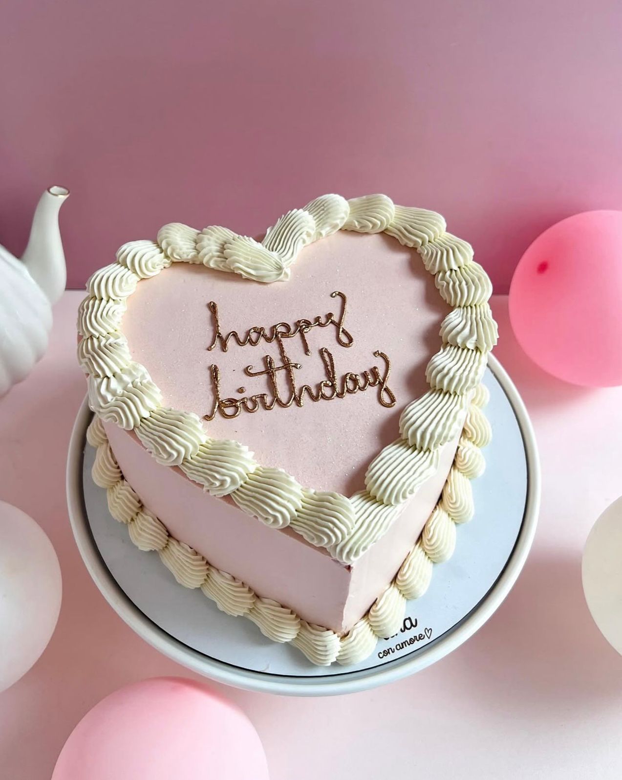 A delicate heart-shaped cake with soft pink buttercream and elegant white piped borders. Simple, vintage, and full of charm — the perfect choice for birthdays, romantic celebrations, or anyone who loves a timeless design.